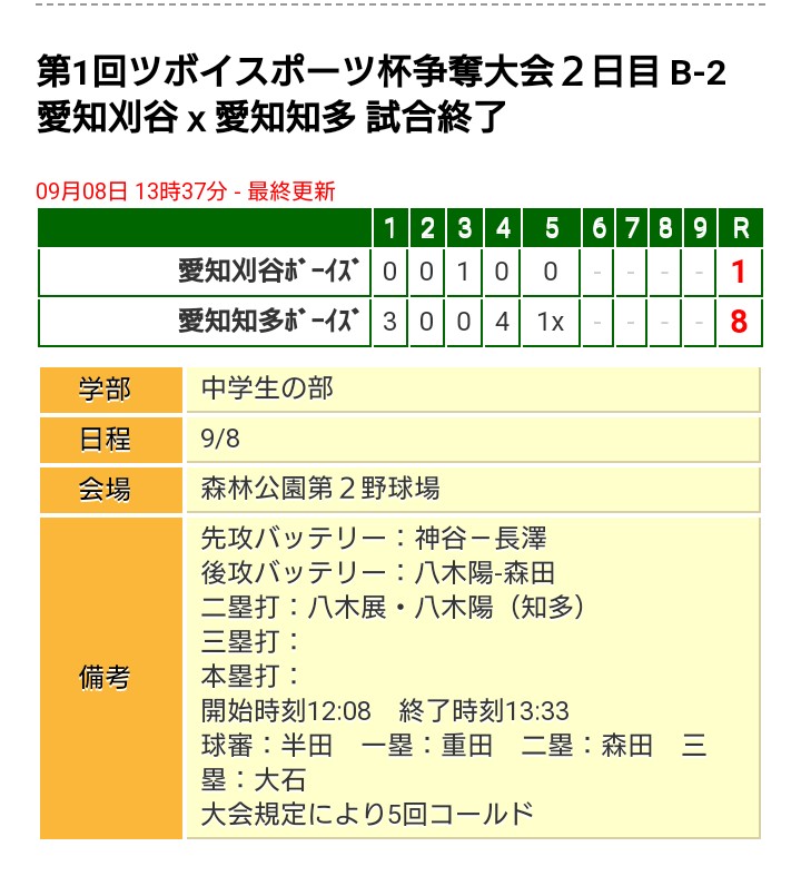2019年9月8日(日)愛知刈谷ボーイズジュニアチームは